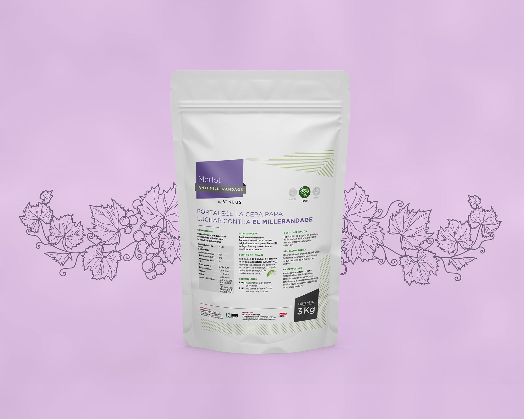 • Création de pictos pour indiquer l'usage du produit (racine / feuille / grappe)